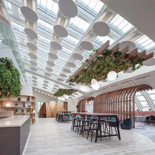 Las plataformas acústicas son perfectas para reducir el ruido en restaurantes con techos altos, añadir un elemento de diseño práctico a las oficinas o crear elementos visuales centrales en recepciones. Desde elegantes y profesionales hasta divertidos y creativos, ofrecemos plataformas de techo que se adaptan a cualquier estilo.