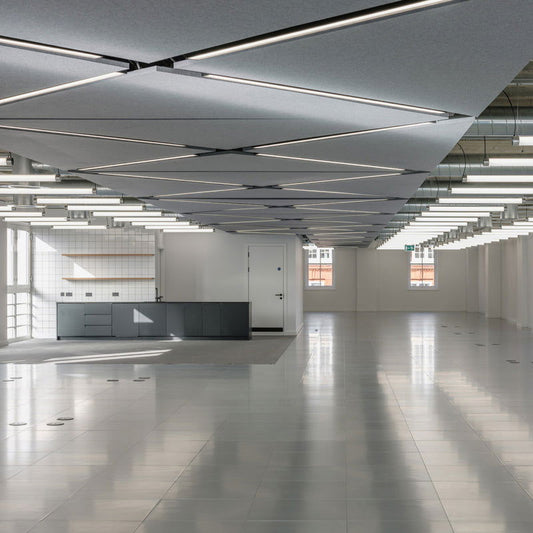 Suspended acoustic rafts are an effective, versatile and attractive solution to reducing reverberation and overall sound pressure levels. Muffle is proud to offer one of the largest ranges of rafts in a huge number of colours and shapes, from leading brands and designers.