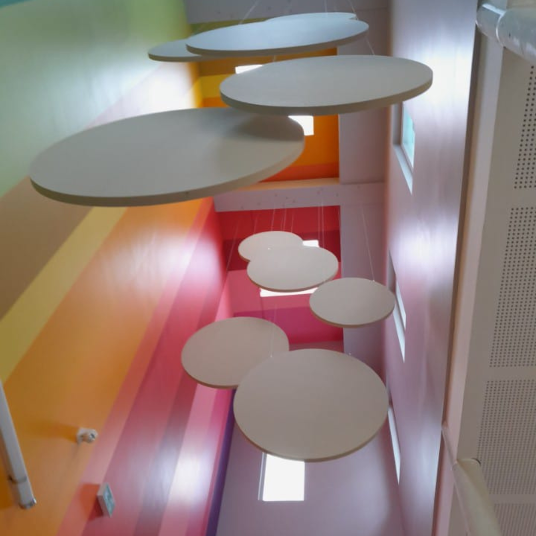 Due to it being a lightweight solution, MuffleTone is able to be placed in a range of areas, such as walls and ceilings, functioning as a wall panel, baffle, or raft, so it can be used to its full potential from any area.