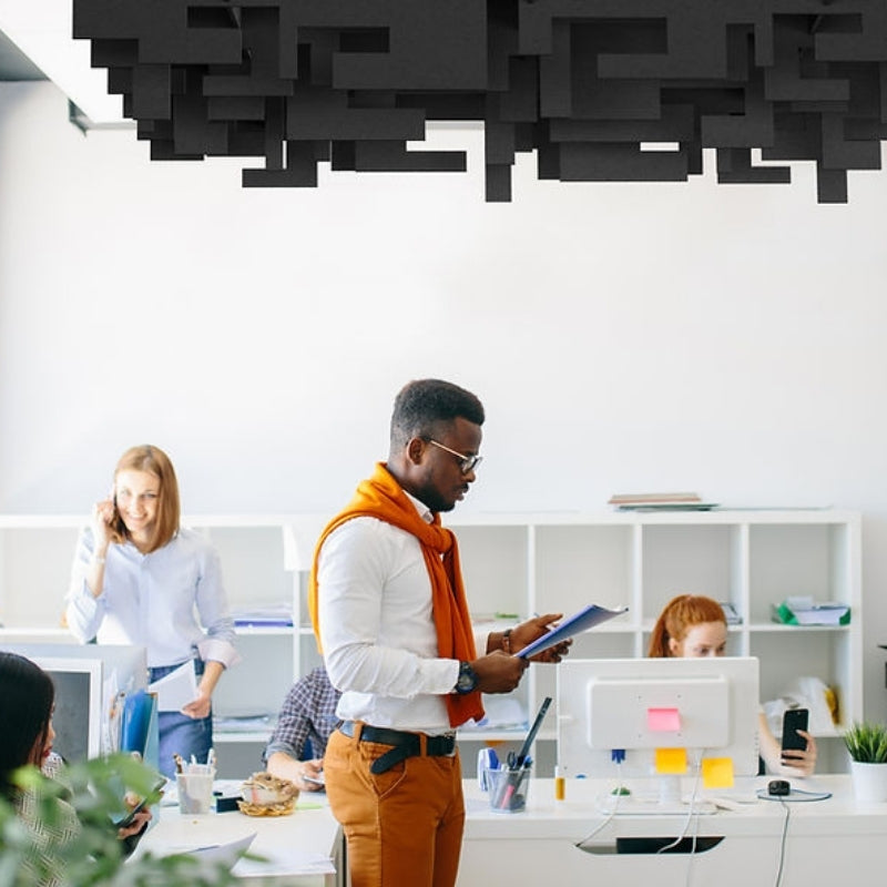 La solución acústica perfecta para evitar ruidos no deseados es el StratoScape de Lumii, que se presenta como una plataforma acústica suspendida que absorbe eficazmente el ruido y crea un ambiente más silencioso y confortable. Su intrincado diseño aporta un ambiente profesional a los interiores modernos, lo que lo hace ideal para oficinas, áreas de hostelería y espacios comerciales.