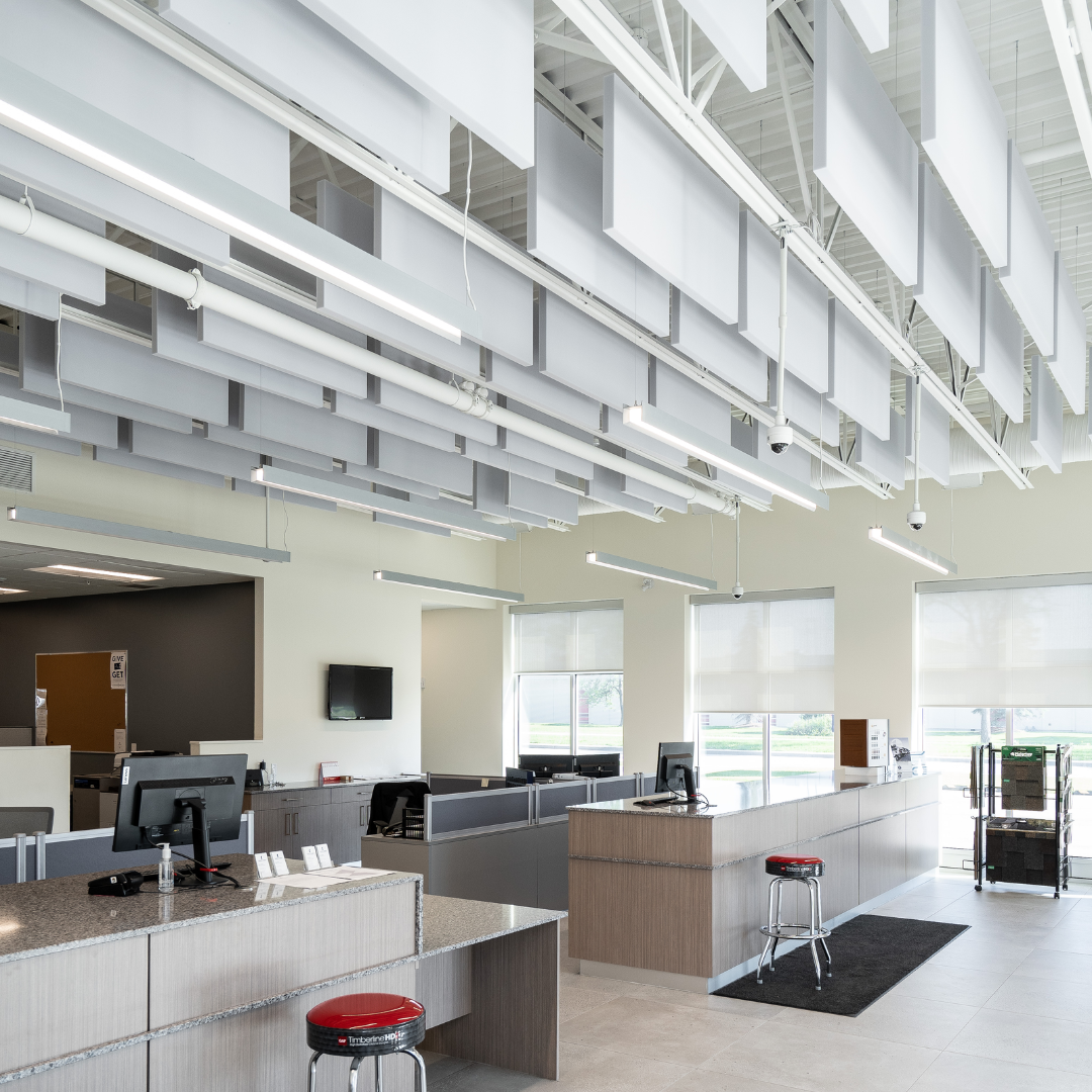 Due to it being a lightweight solution, MuffleTone is able to be placed in a range of areas, such as walls and ceilings, functioning as a wall panel, baffle, or raft, so it can be used to its full potential from any area.