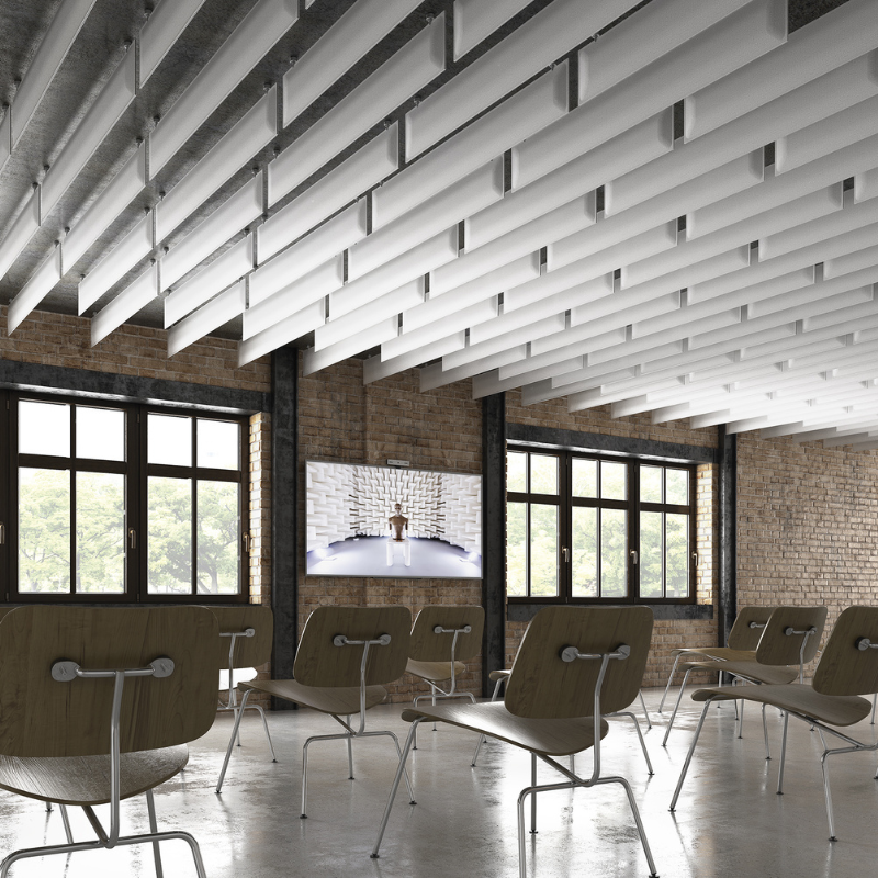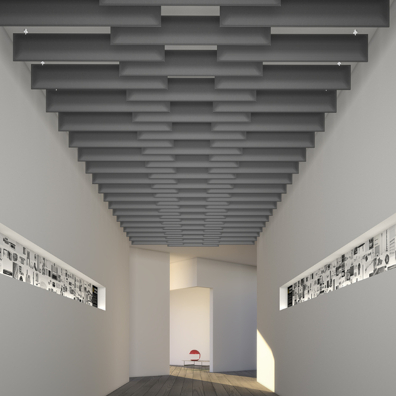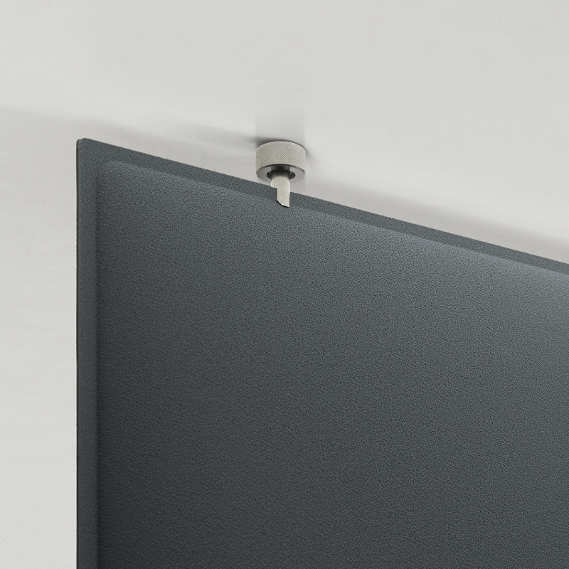 Each panel is crafted utilizing Snowsound technology, featuring a polyester internal padding, covered in Trevira CS® fabric, allowing for a durable product capable of absorbing 94% of human speech frequencies.