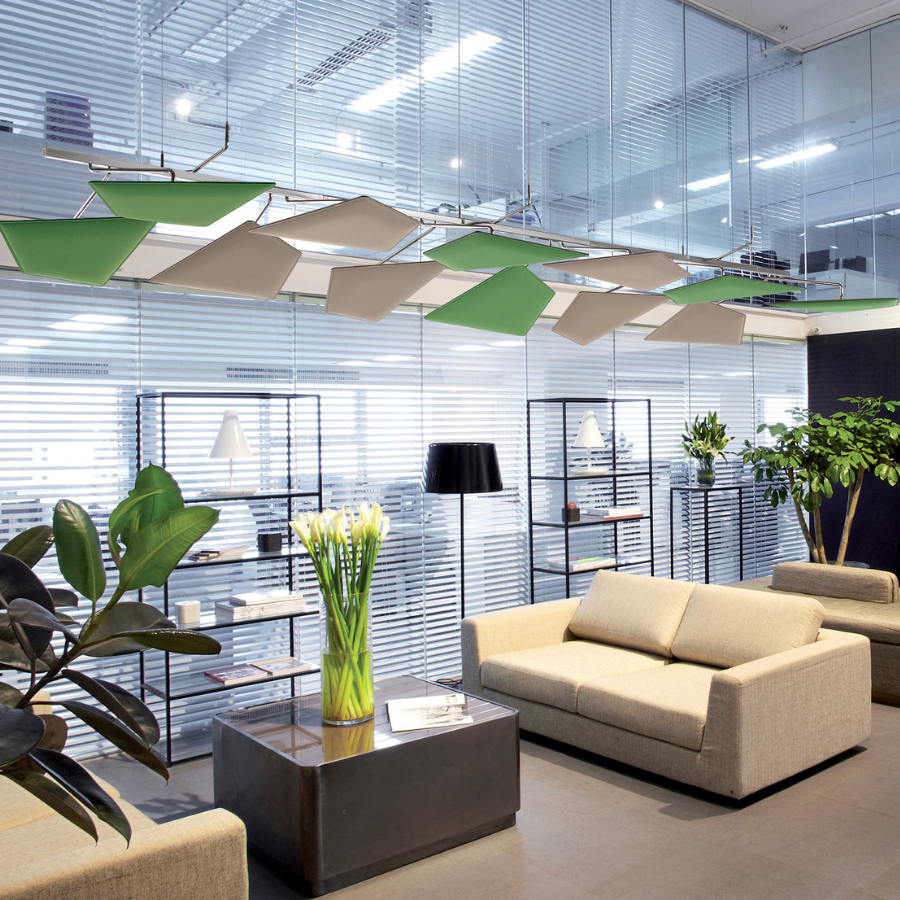 The Flap Chandelier comes in either a fixed or modular designed frame, with the arms anchored from the centre beam, providing extra flexibility. Each panel consists of a polyester internal padding covered in Trevira CS® fabric, and can easily rotate and tilt within the range of the frame. The frames are designed for compatibility, allowing them to be combined to create 12 and 16-panel arrangements, for a truly premium acoustic solution.